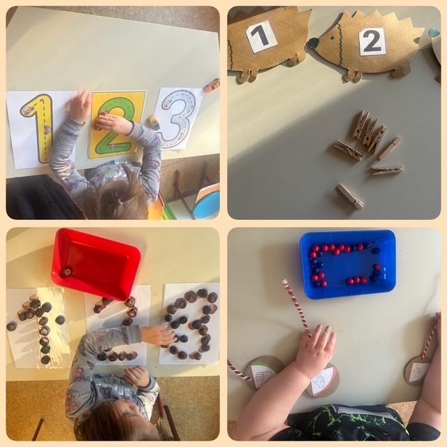 Im Mathematikunterricht lernen die Kinder aktuell spielerisch die Zahlen 1-3 kennen. An verschiedenen Stationen erarbeiten wir uns auf ganz unterschiedliche Weise ein erstes Mengenverständnis. Ganz nebenbei schulen wir auch gleich noch unsere feinmotorischen Fähigkeiten.