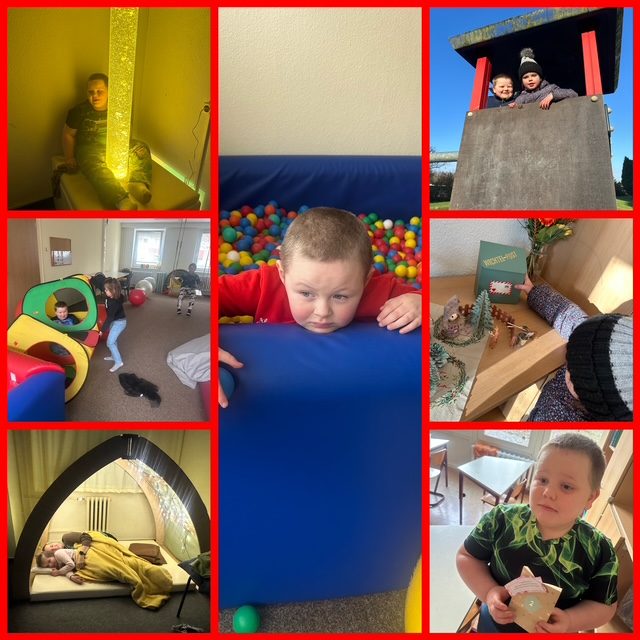 Ein kleiner Einblick in die vergangenen Wochen. In Deutsch erarbeiten sich die SuS an verschiedenen Stationen die Buchstaben. Natürlich darf bei all der Anstrengung die Entspannung nicht fehlen.